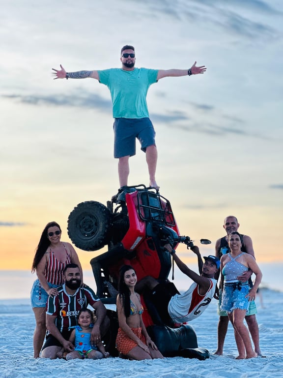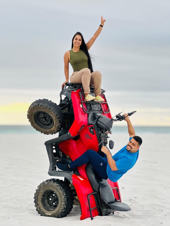 Desfrute de uma emocionante aventura em Arraial do Cabo com nosso passeio de quadriciclo guiado por um profissional experiente. Você terá a oportunidade de dirigir seu próprio quadriciclo, com capacidade para até duas pessoas por máquina. Explore as belas paisagens da região enquanto desfruta de uma experiência inesquecível.